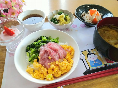 *まぐろすきみの三色ちらし