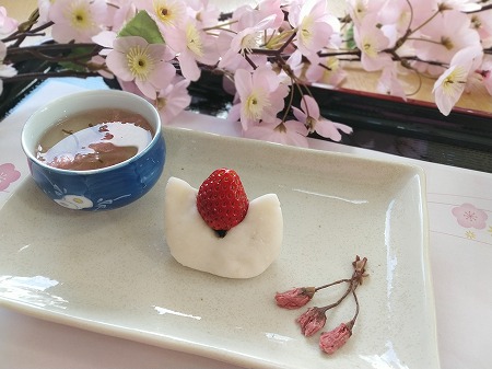 苺大福と桜茶でした