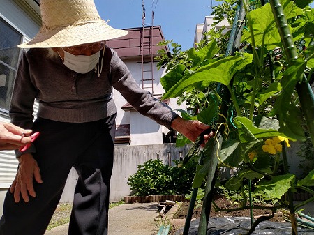 デイサービスの畑で、Y様に