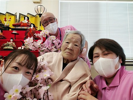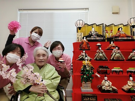 午後は立派な七段のお雛様飾りの前で