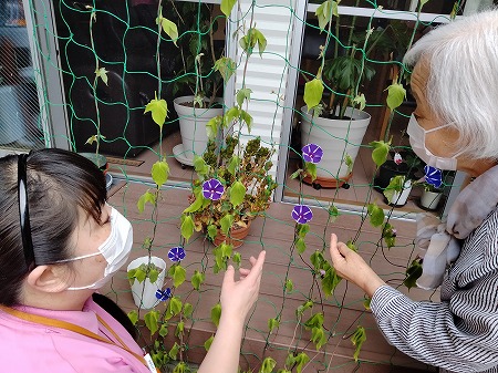 朝顔が咲いているのを見て