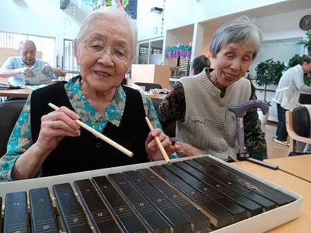 職員が持ってきた「木琴」。