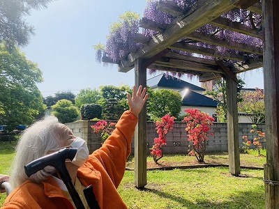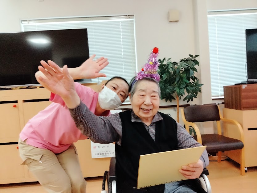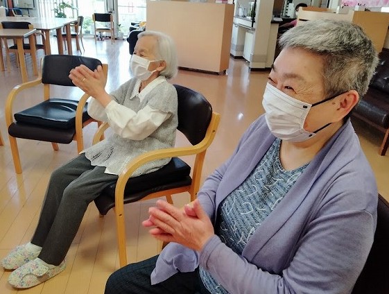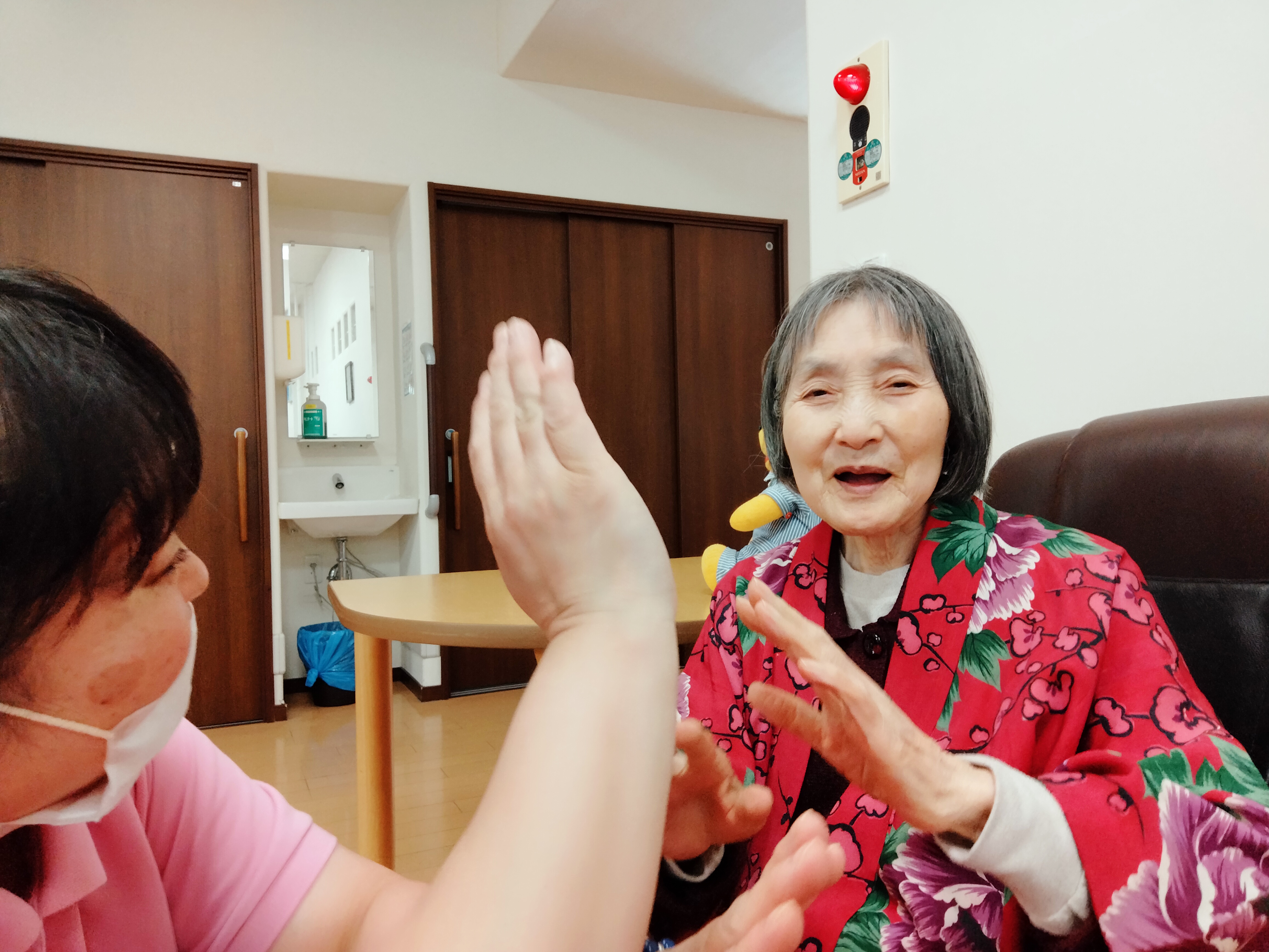 着物を着て、手踊りを教えてくれる利用者様も