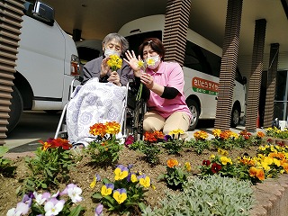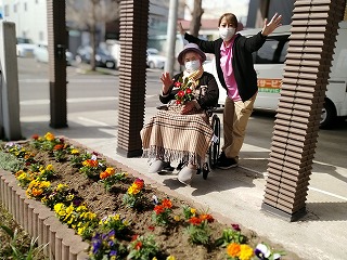 利用者様と花壇作り始めました。