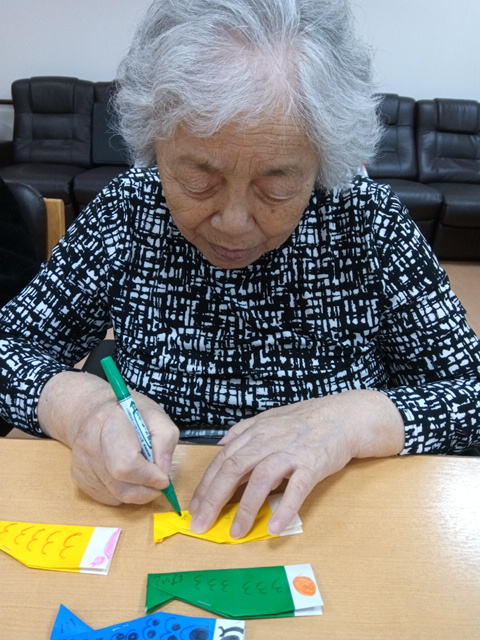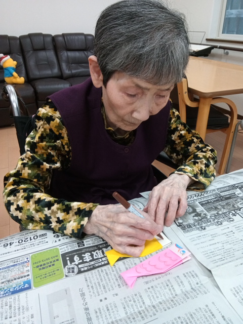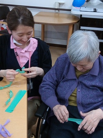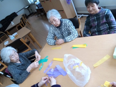 折り紙でチューリップや四つ葉を折ったりし