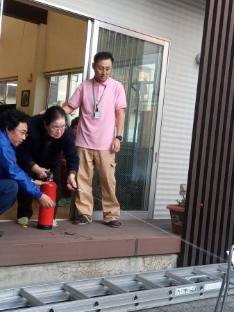 消火器(訓練用)による消火訓練です。