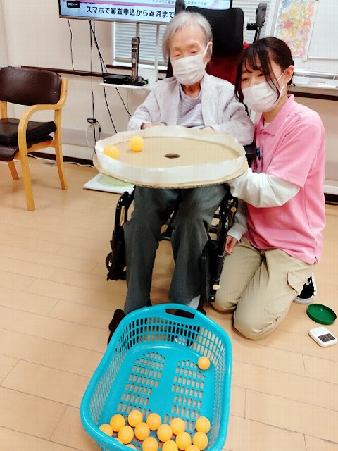 本日のレクリエーションは「ボッチャ」ゲームです。
