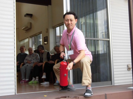 慌てず、消火器で初期消火です。