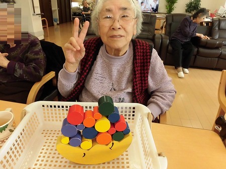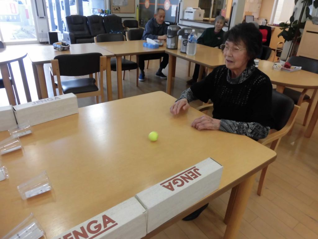 バランスゲームに取り組む利用者様。