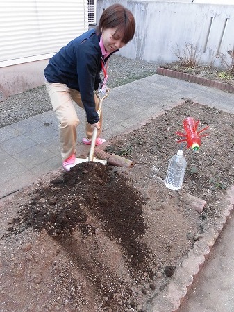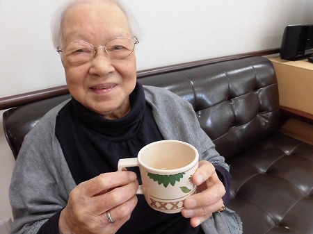 お腹をナデナデする利用者様。