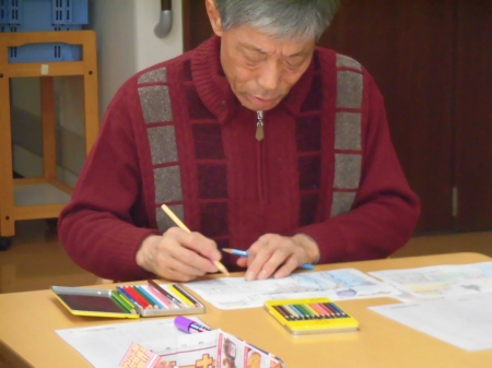 塗り絵に取り組まれるA様。