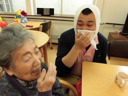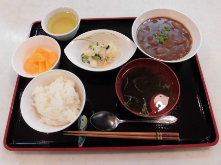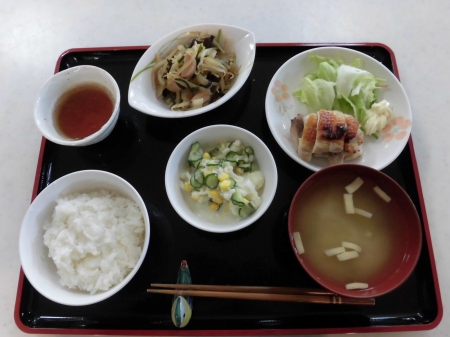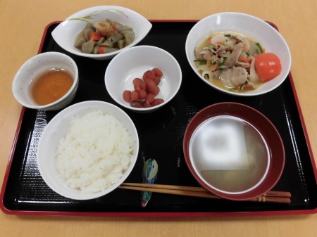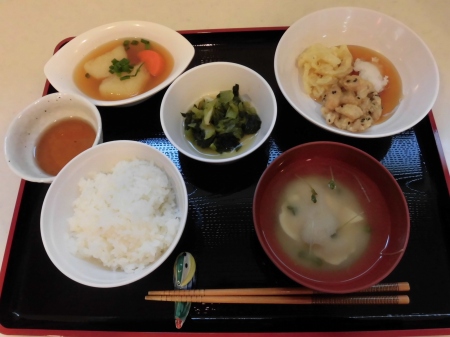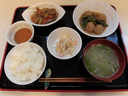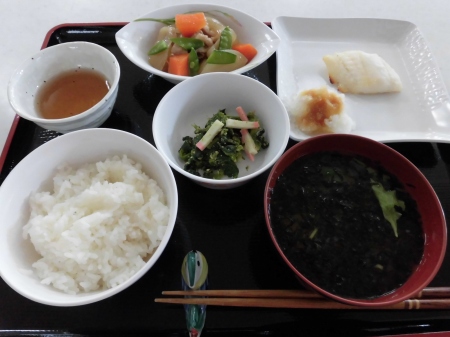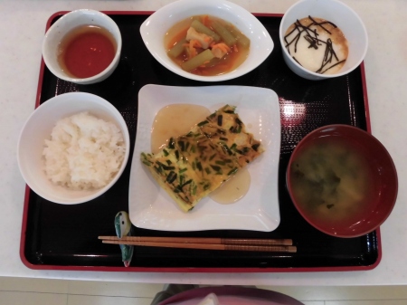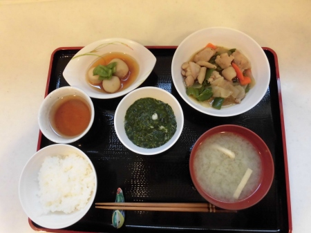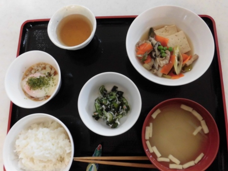 昼食後に、ゴロゴロ~と 大きな雷が鳴り、 強く冷たい雨が 降ってきました。 冬の神様が・・・ もう私の季節は、終わりと 冷たい涙を流したのでしょう? そんな 寒くて、冷たい雨や 雷に 体力と笑顔のある私達は 負けません。( ^)o(^ ) 今日のランチメニュー *ご飯 *モロヘイヤ味噌汁 *エビ玉 *ふきの炒め煮 *とろろ芋 でした。 それでは、また明日( ^ω^)・・・ 笹の葉でした。