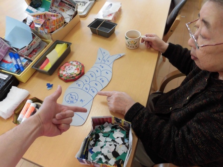 三月の制作では とても綺麗な満開の桜(*^^) 本日から 次の制作に取り掛かりました(^^)/ スタッフの説明を 真剣に聞いておられます。 鯉のぼりですね(^^♪ 沢山の鯉のぼりが 出来そうです( *´艸`) どのように仕上がるのか 過程をお伝えして いきたいと思います!(^^)! *本日の昼食です* *ご飯 *卵味噌汁 *かれいの山椒味噌焼き *里芋の含め煮 *かぶしそ風味和え かれいの山椒みそ焼き 美味しかったです♪ 福井。