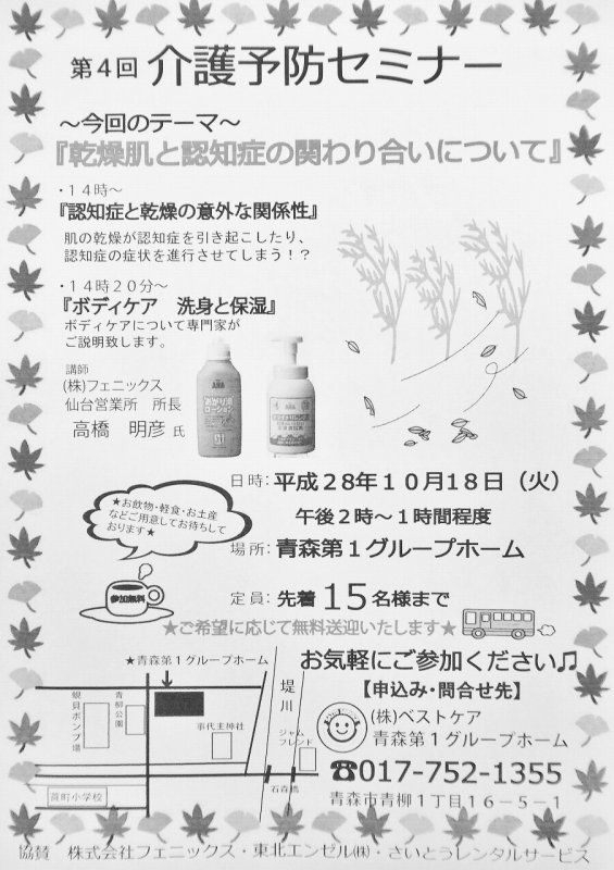 場所は『青森第1グループホーム』です時間は14:00~1時間程度です