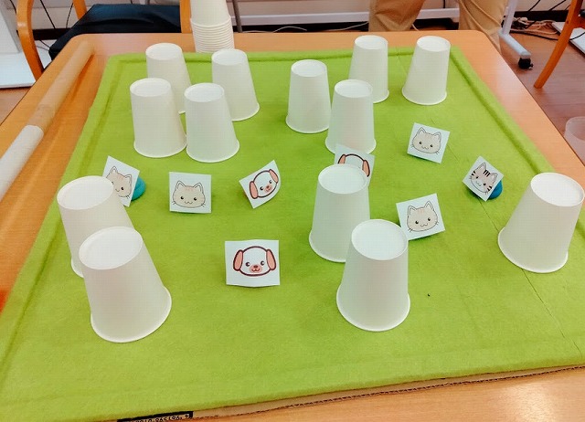それを紙コップで隠しシャッフルシャッフル…