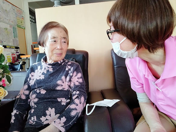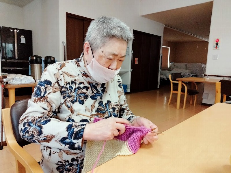 編み物に集中しているT様