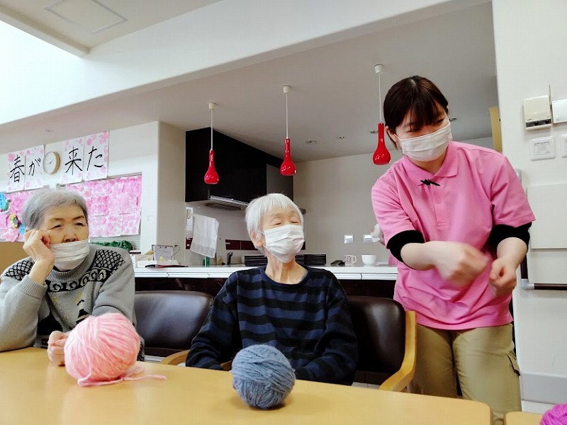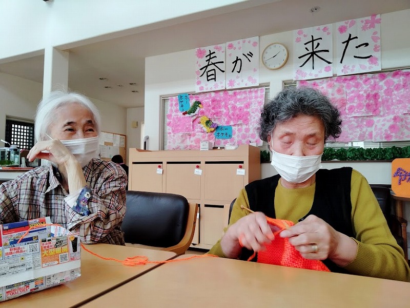こちらでも、編み物をするW様と、