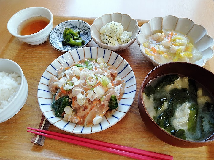 ・わかめ、太ネギの味噌汁