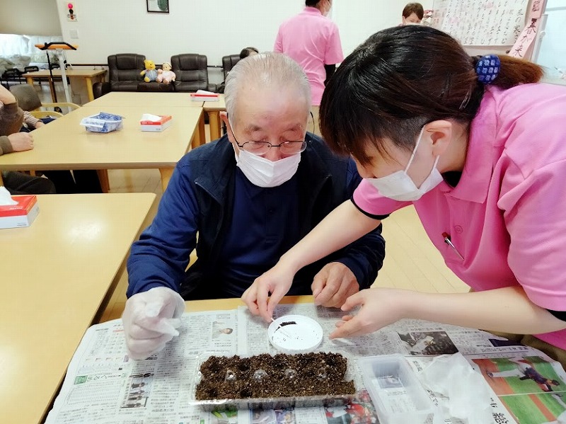 慎重に爪楊枝で植えました