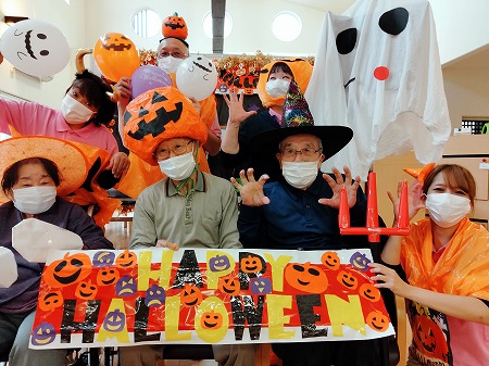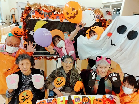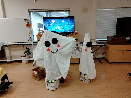 ハロウィンの制作を協力し合い