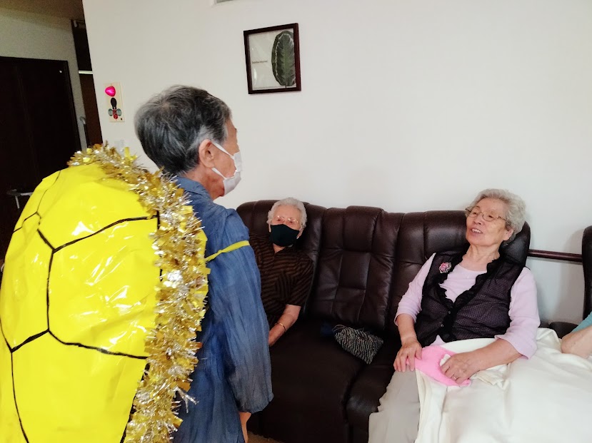 こちらは敬老会で使用する黄金の亀の甲羅を