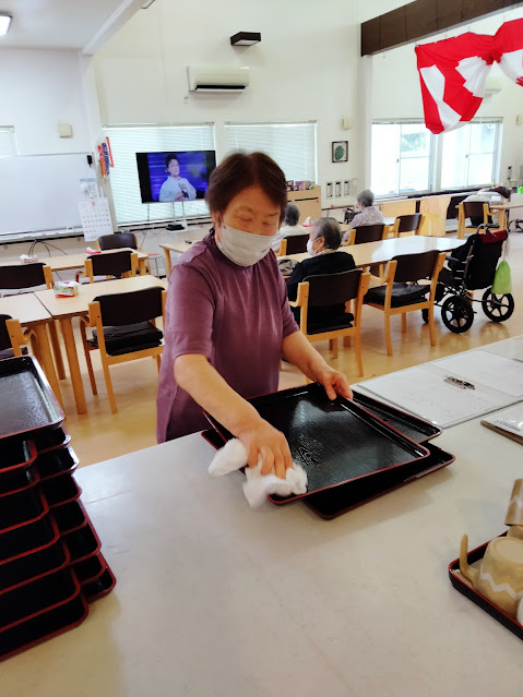 お盆を拭き・・・