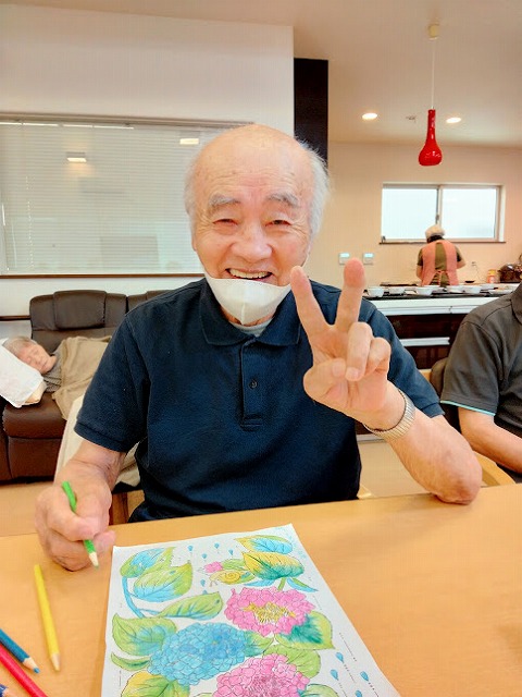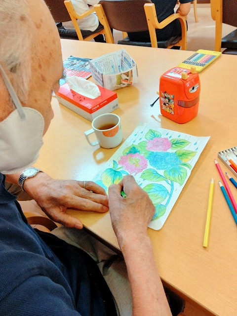 ↑ 素敵な色使いで塗り絵に取り組まれているT様 ↑