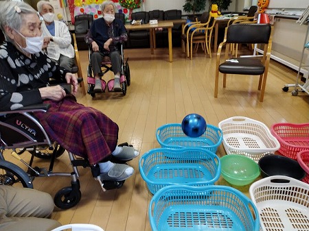 レクリエーションで的当てに挑戦され