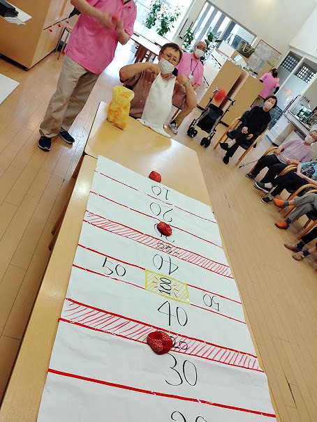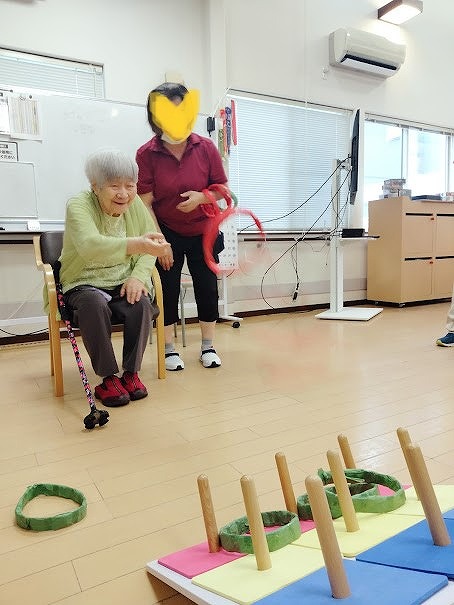 今日のレクリエーションは「 輪投げ 」