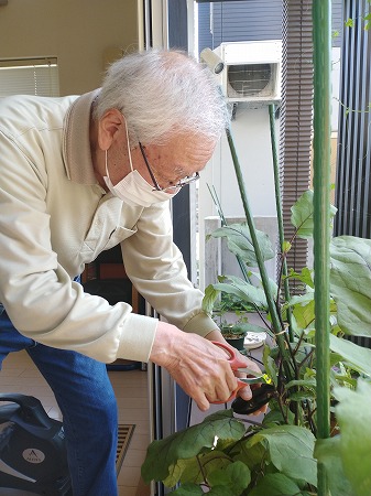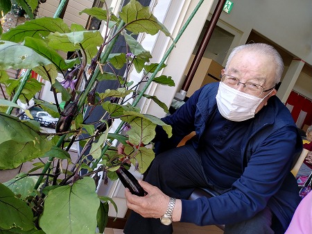 見事に育ったなすを見て、
