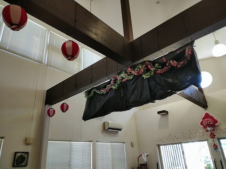 そして天井には、なにやら黒い幕が・・・