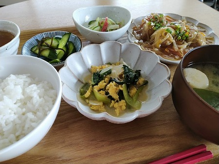 *チンゲン菜の卵味噌炒め