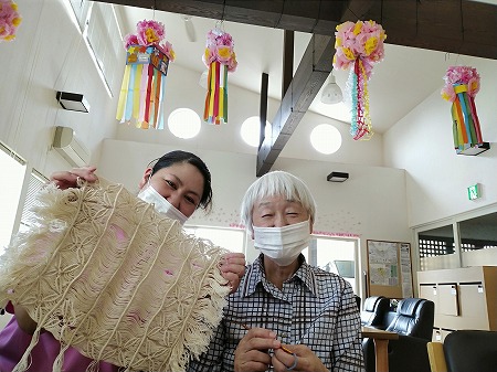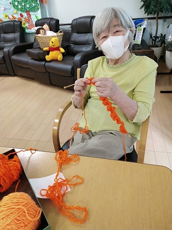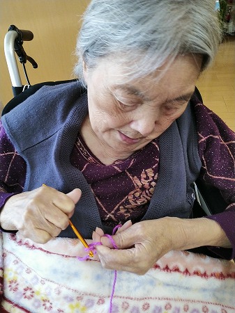 得意の編み物を楽しんで、自然と笑顔に