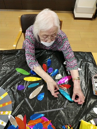 花火型を一枚一枚丁寧に貼っております。