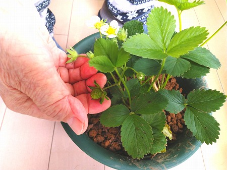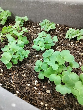 野菜の成長を見ながら日光浴