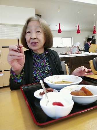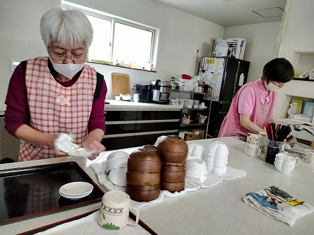 K様に食後の食器拭きをお願いしてみました。