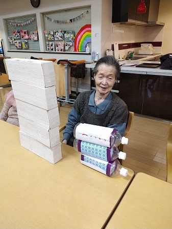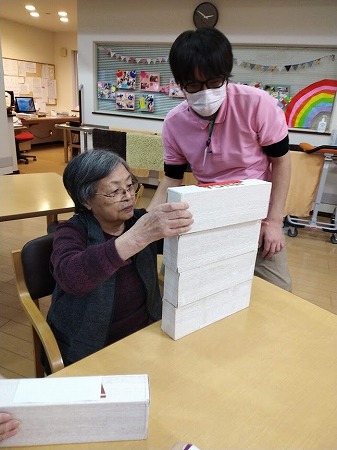 時々箱が倒れて、そのたびに大笑い!
